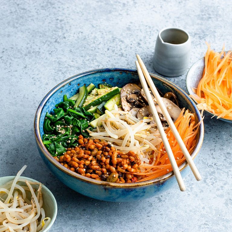 Transform a zesty Korean-style rice bowl into a vegan delight with this simple yet flavorful blend of rice and veggies. Highly adaptable to personal